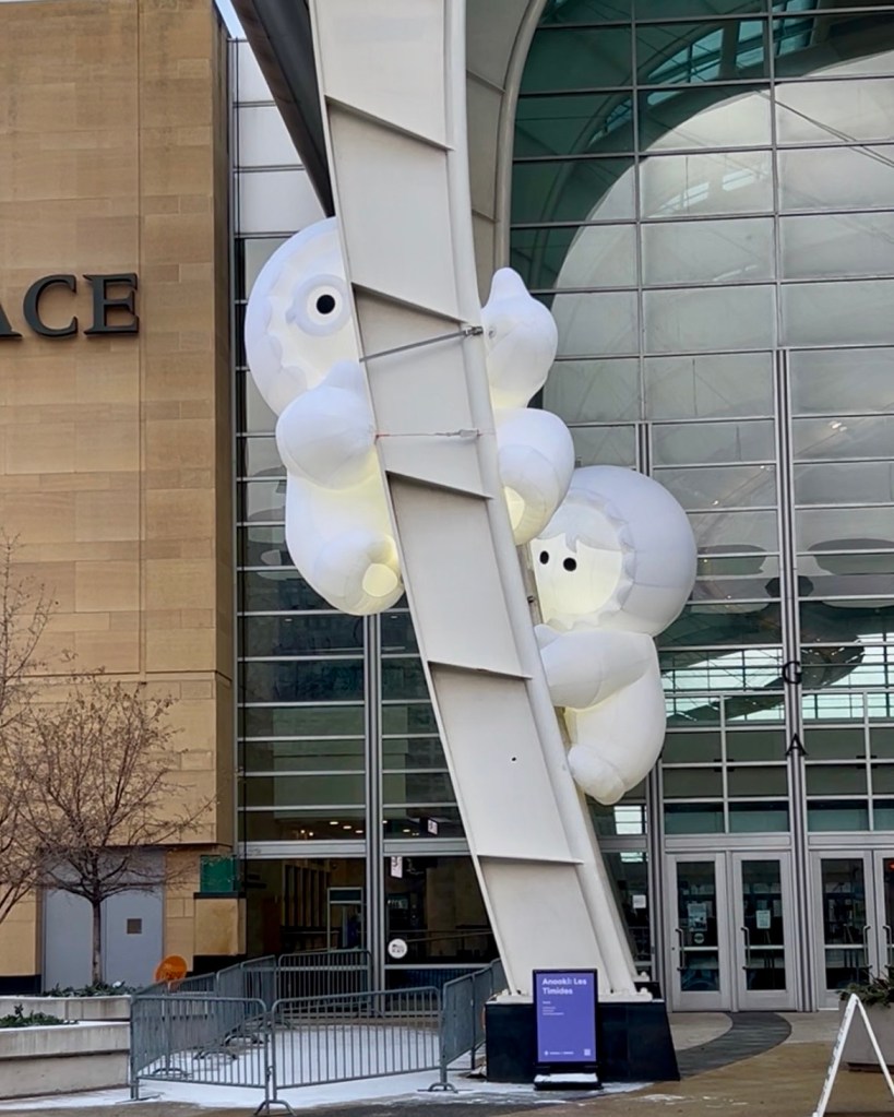 Even though I didn’t get to fully appreciate the lighting aspects of the displays throughout the city, I did still have fun seeing a few the next morning. My favorite was The DOOR(S) by Big Art – I think because I’m nosy and it was fun to open all of them. Inside were videos and visuals that I know would have been awesome at night. The cutest installation I saw definitely goes to Anooki: Les Timides by Inook. The amount of emotion that comes through from these inanimate objects was impressive.