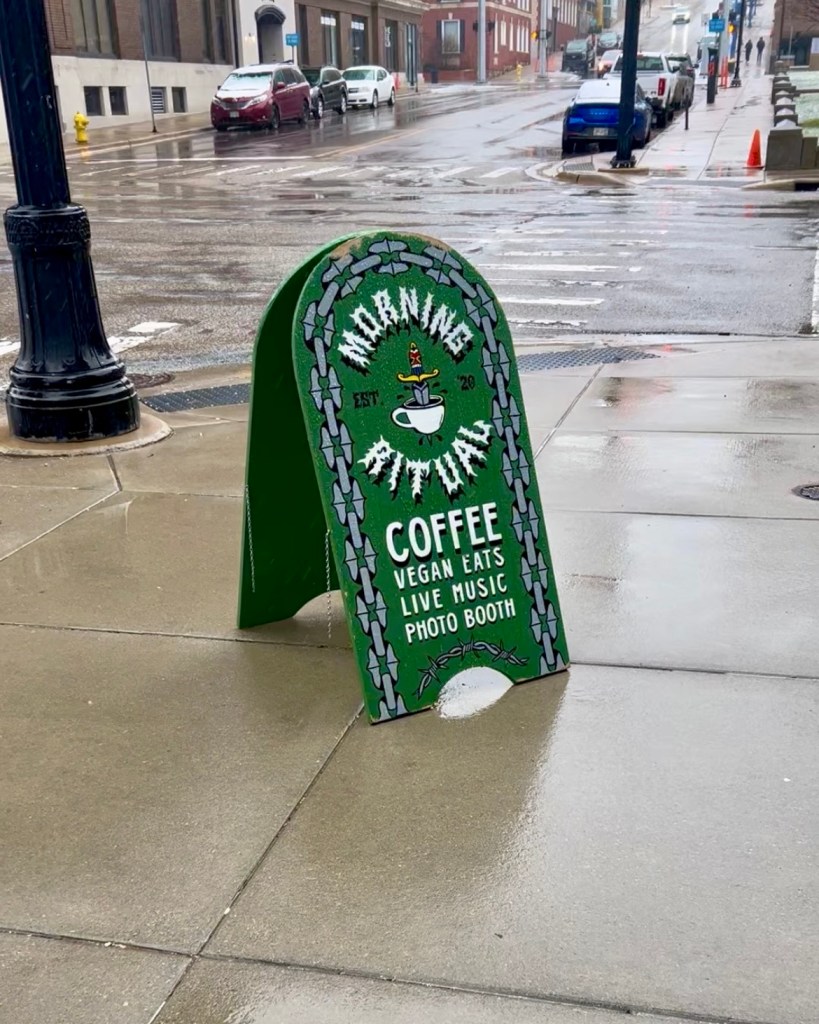 I’m SO happy I found Morning Ritual. This is a coffee shop I would drive two hours to go to again. I ordered my usual, an oat milk matcha latte with cinnamon and found a spot to journal and warm-up at. The vibes were immaculate. Alternative music. Awesome art. Cool people. A food pantry. You simply MUST check out Morning Ritual the next time you’re in Grand Rapids.